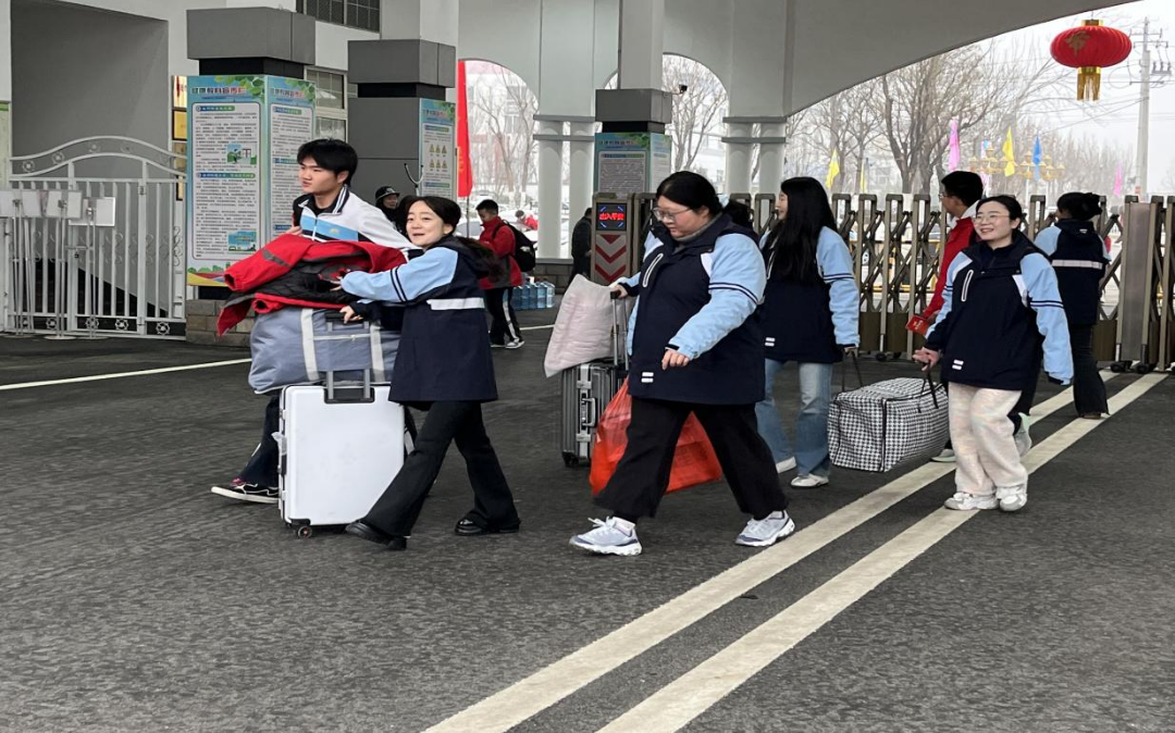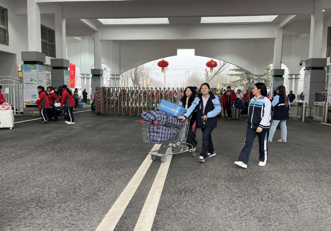 高中部团委李振良书记带领由高一、高二团员组成的志愿者服务队,也积极开展暖心志愿服务。志愿者们身着志愿袖标,主动热情、分工协作,在校门口主动接过同学们手中的行李,一趟趟往返搬运。