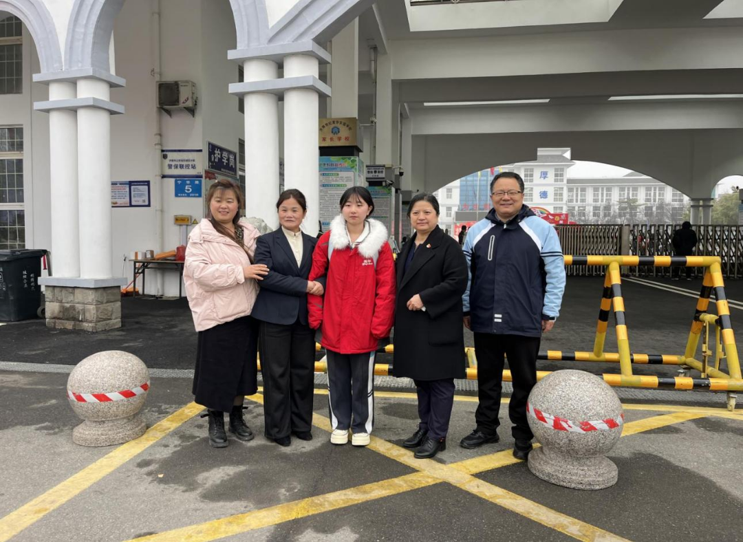 高二(1)班刘梦涵家长专程来到学校,将两面印有感谢文字的锦旗送到姚校长、王蒙部长手中,向学校及两位领导致以诚挚谢意。
